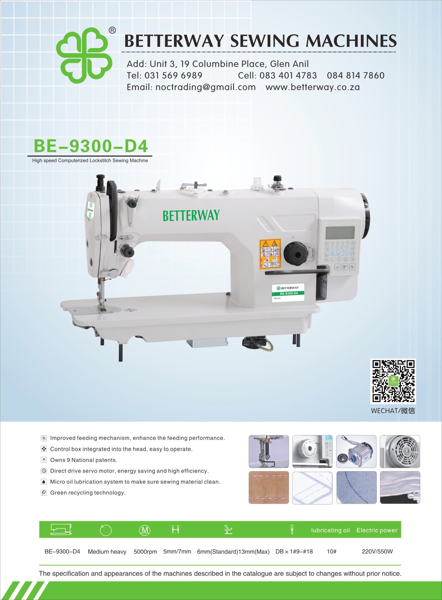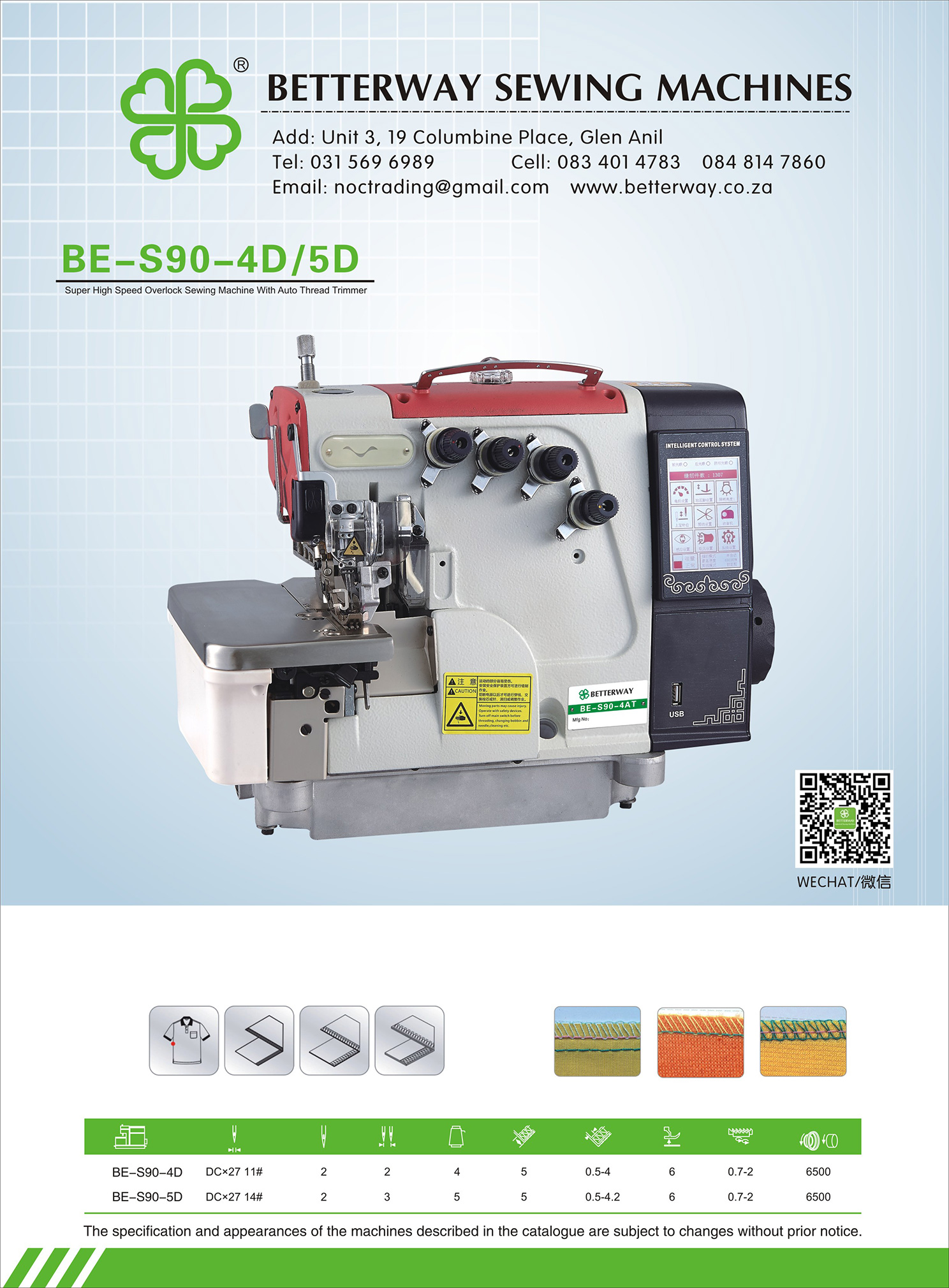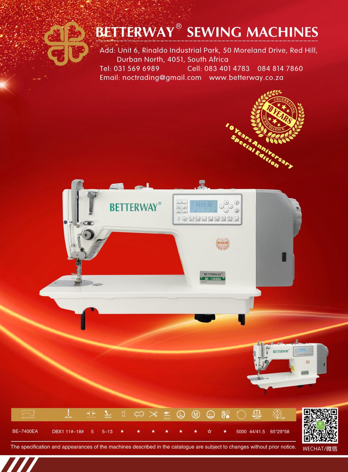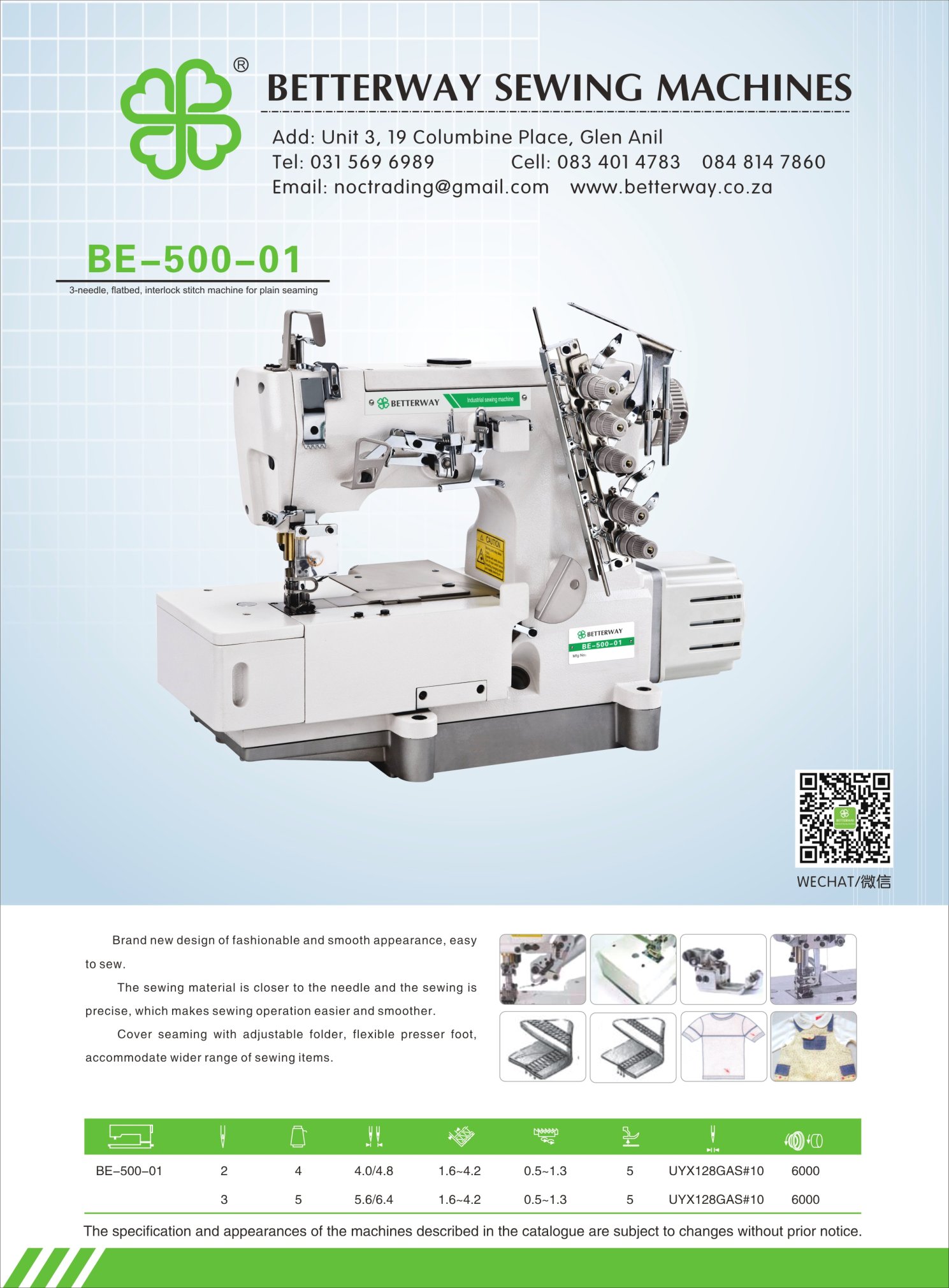 Established in 2016. Durban based importer and distributor for industrial sewing machines and allied products. Mainly engaged in industrial sewing machine sales, sewing machine parts and maintenance.