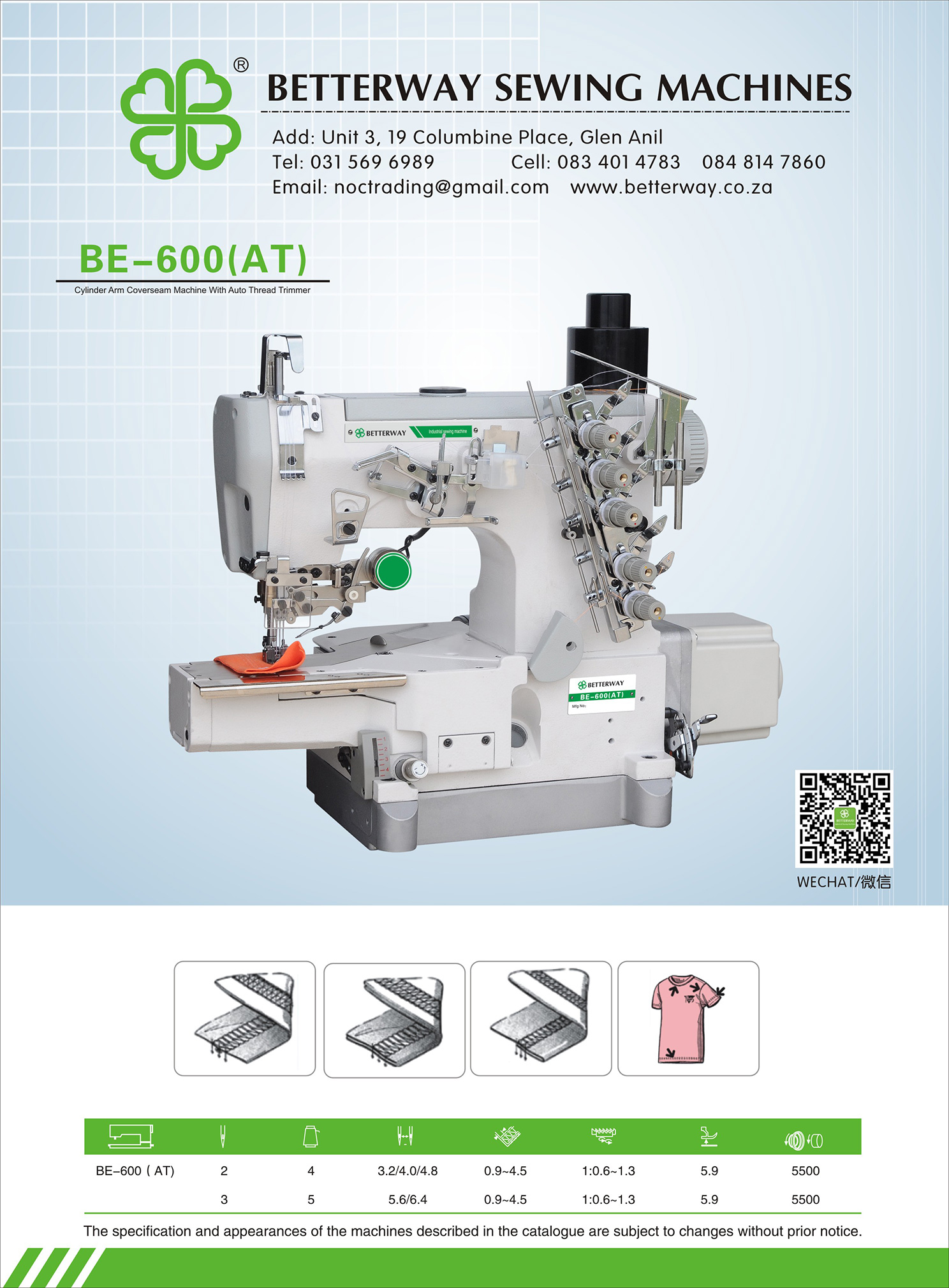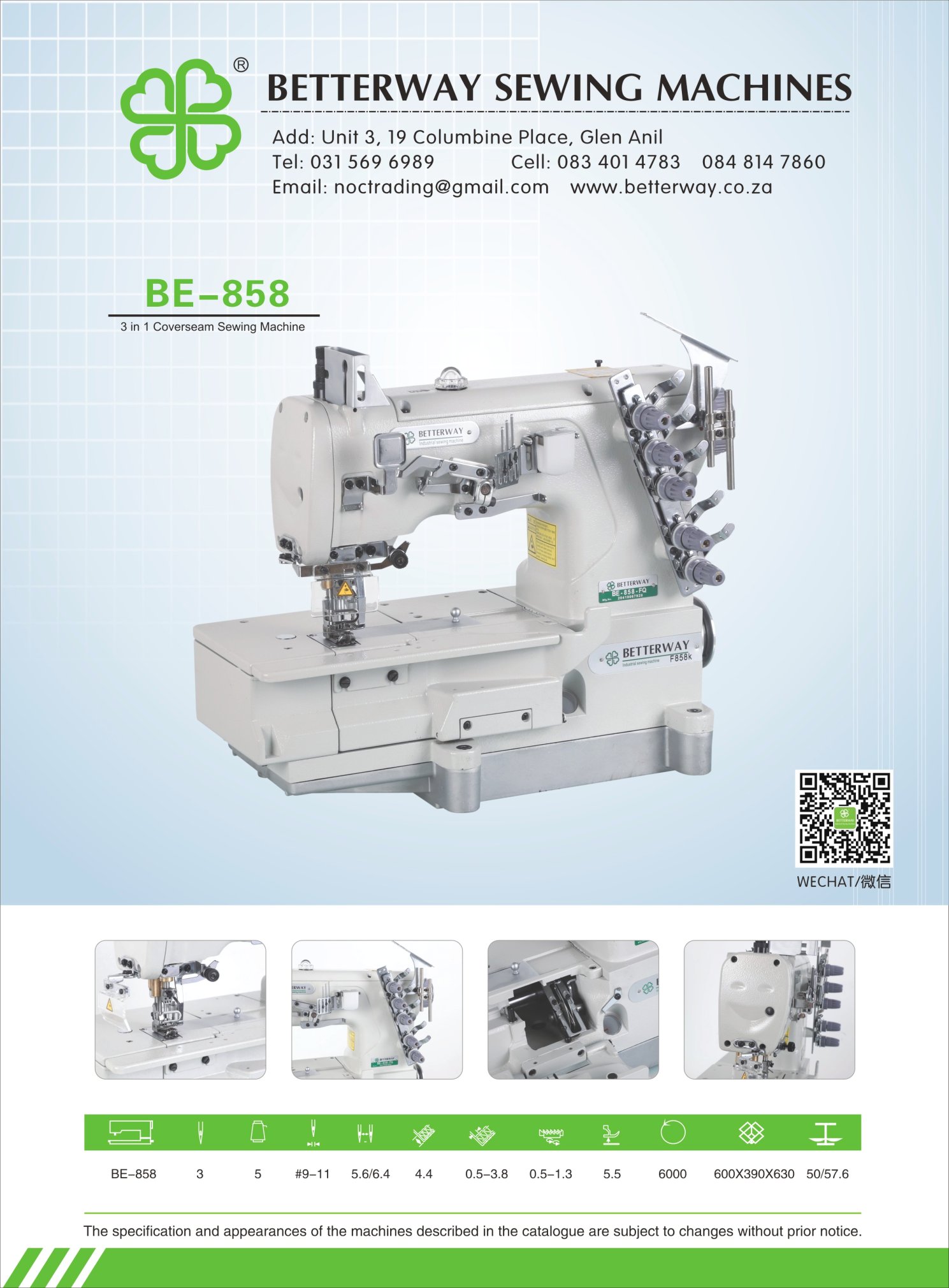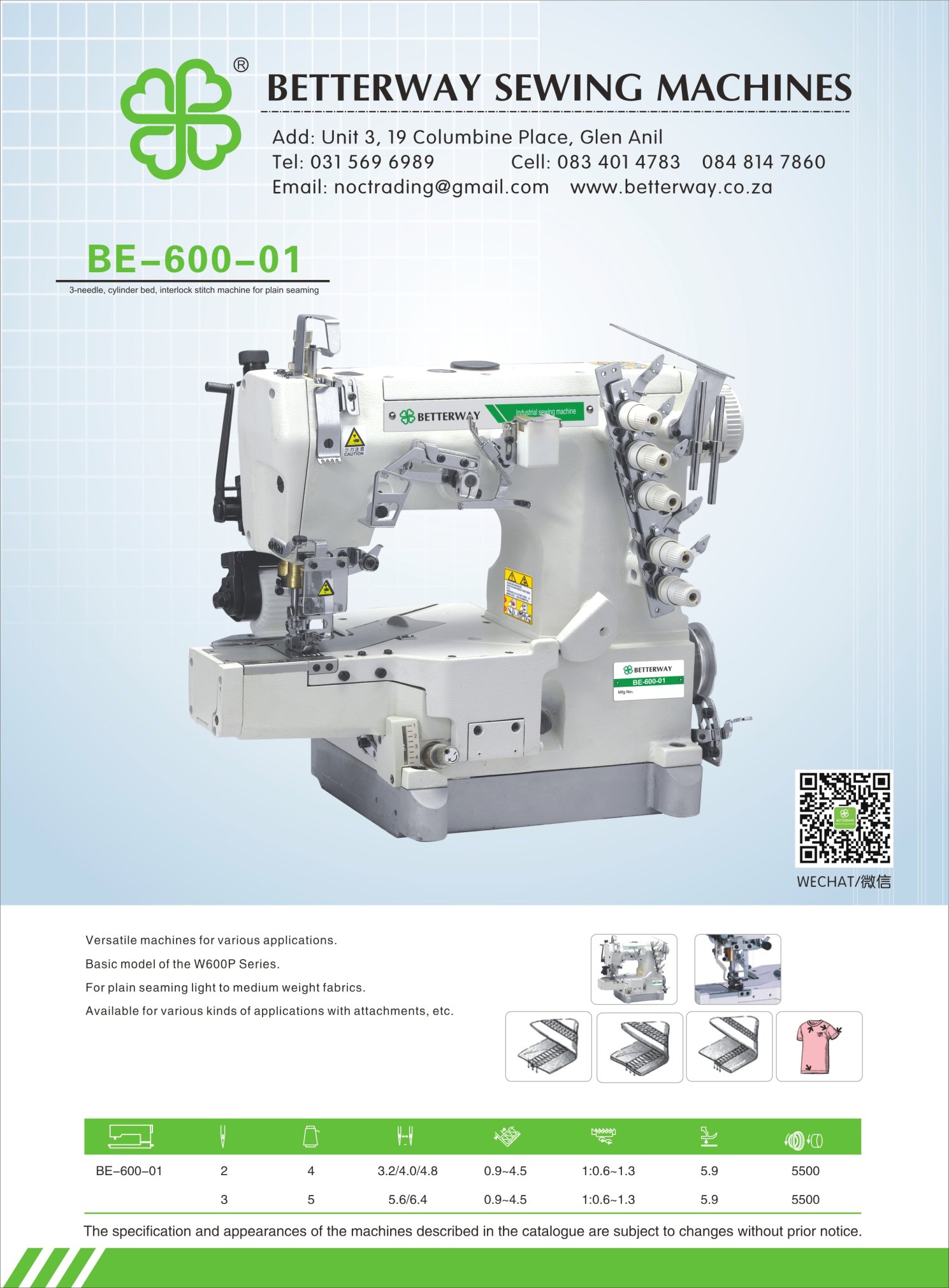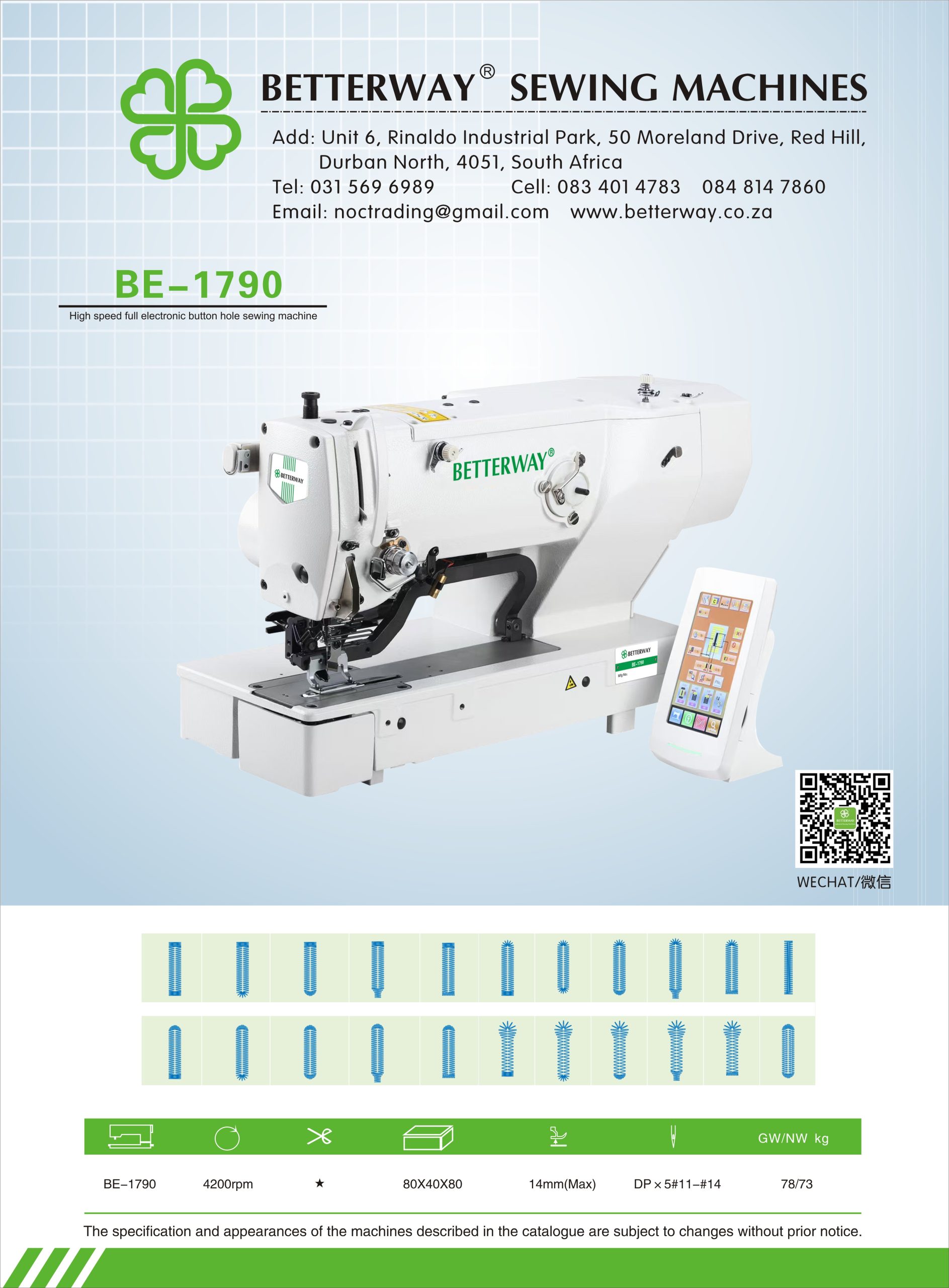 Established in 2016. Durban based importer and distributor for industrial sewing machines and allied products. Mainly engaged in industrial sewing machine sales, sewing machine parts and maintenance.