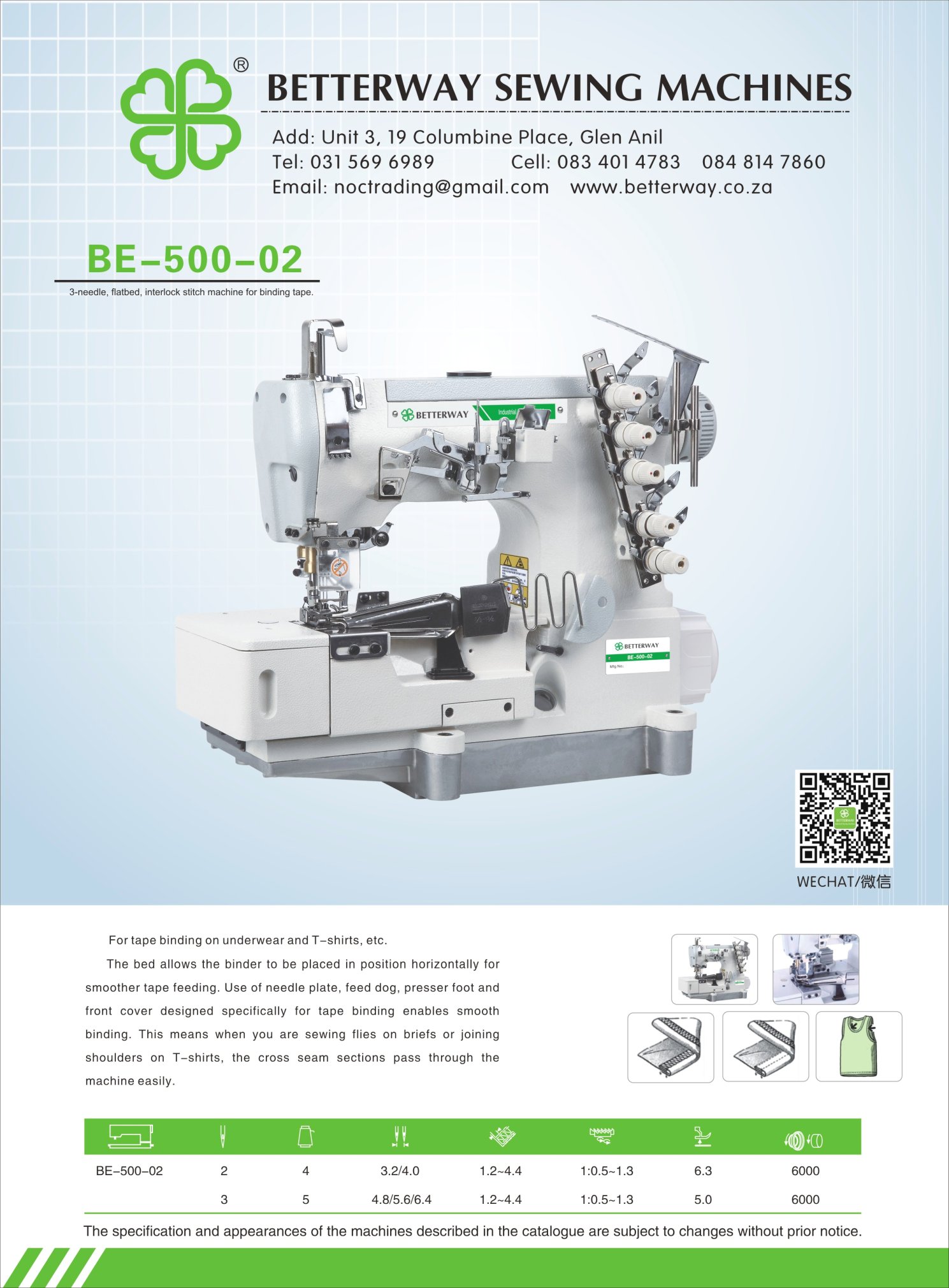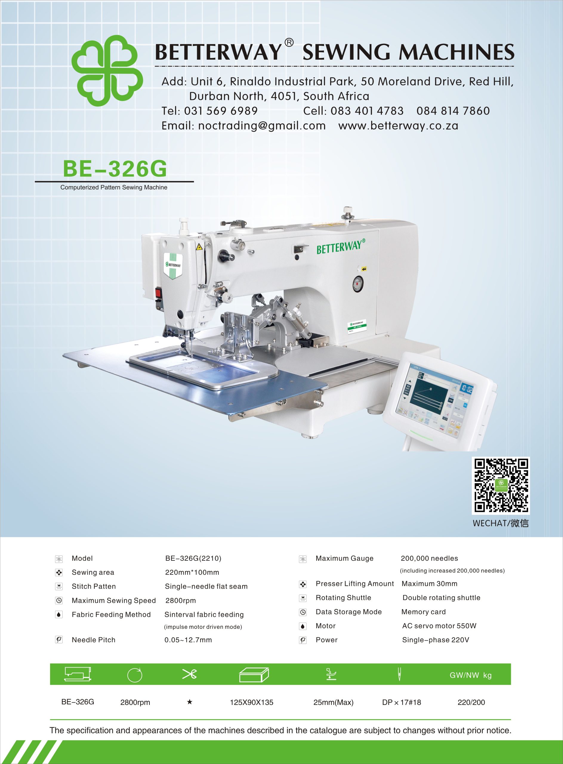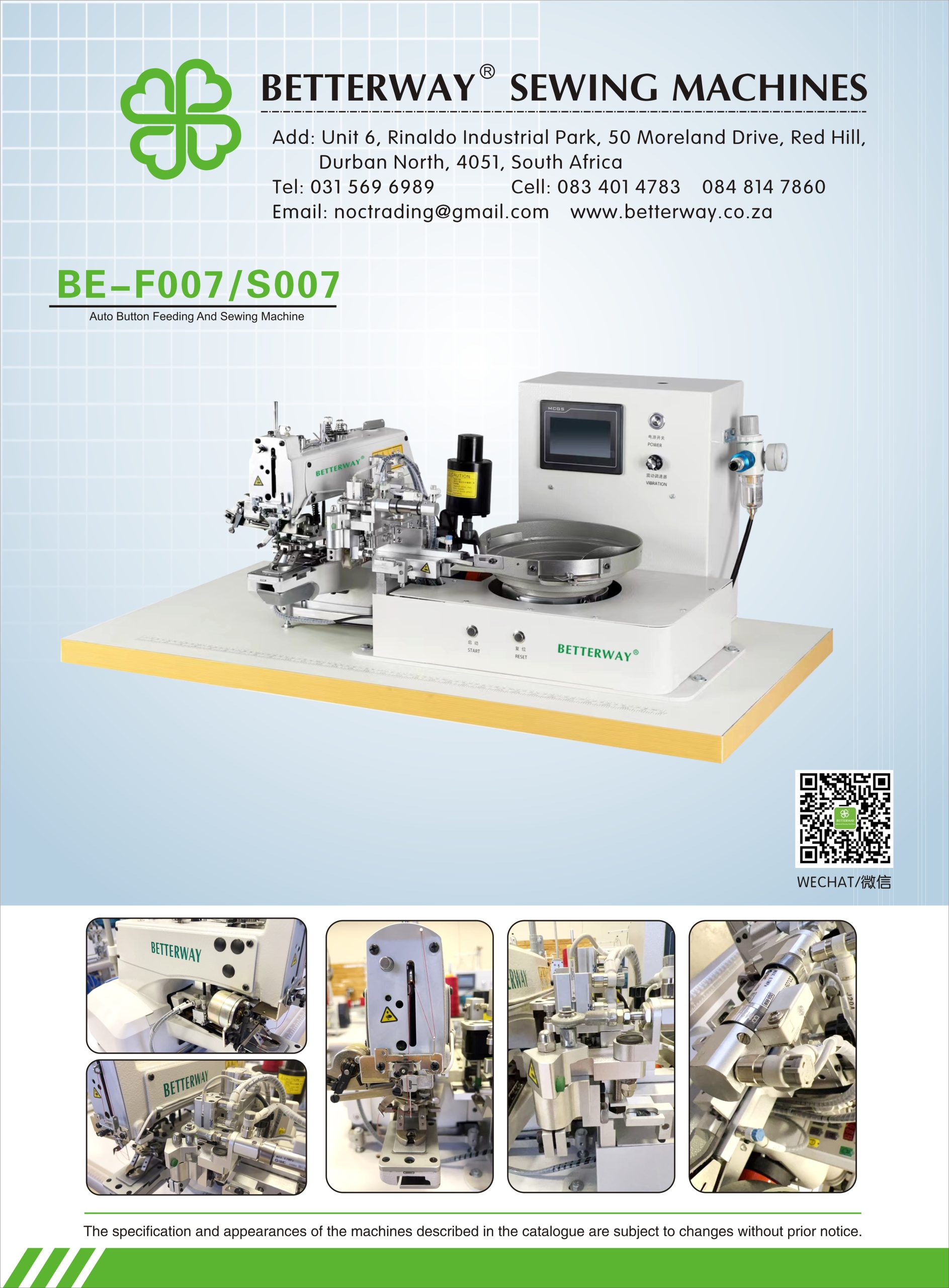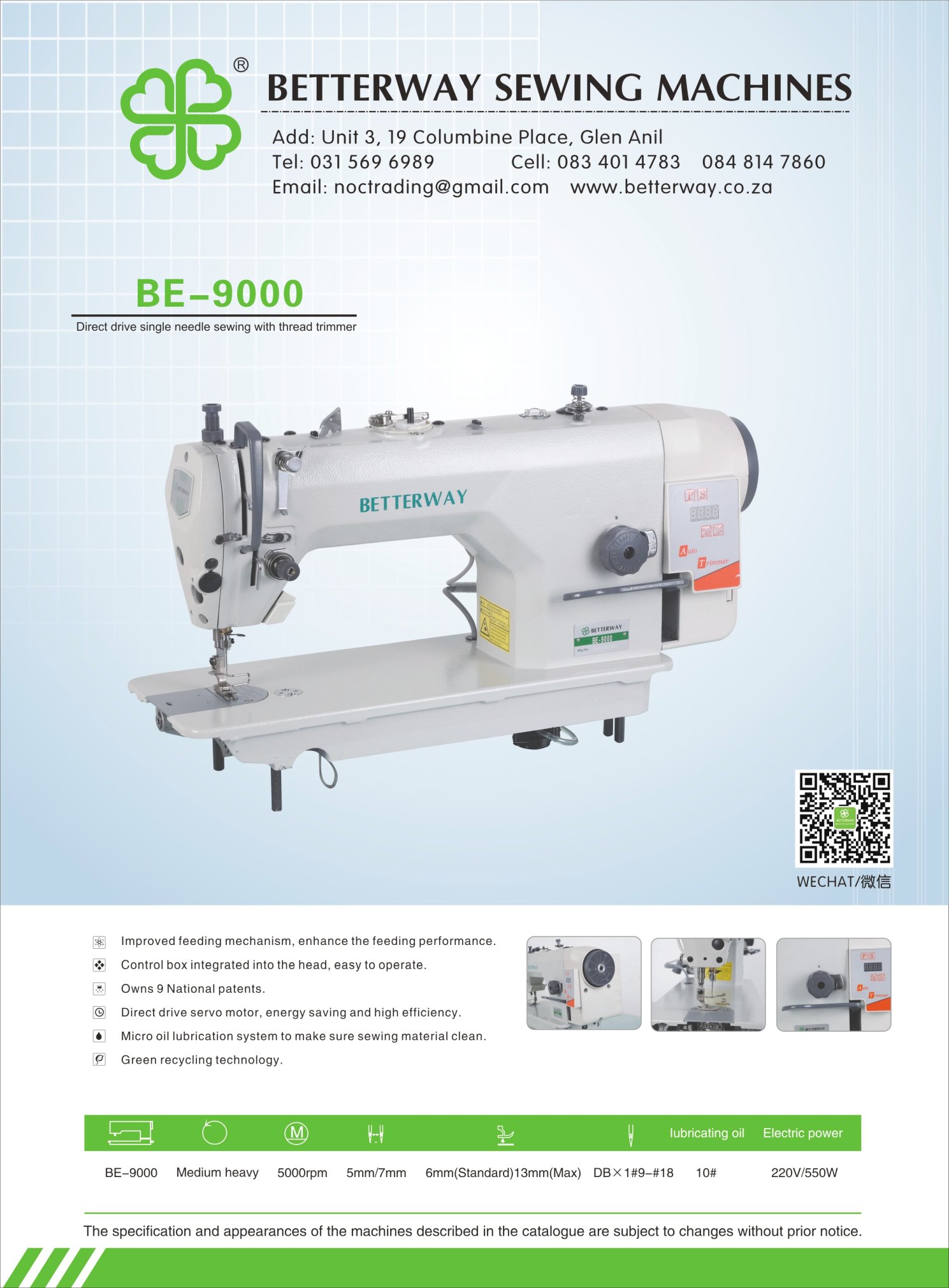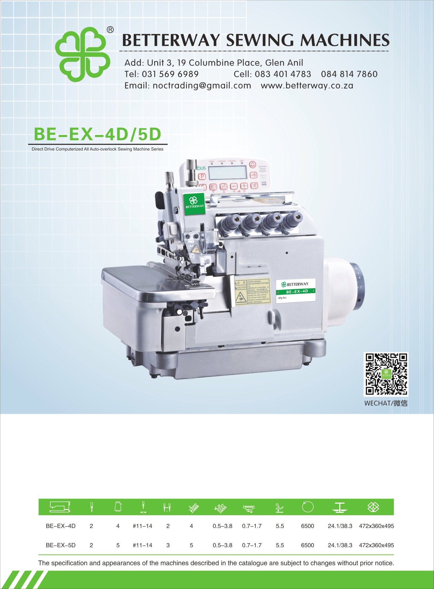 Established in 2016. Durban based importer and distributor for industrial sewing machines and allied products. Mainly engaged in industrial sewing machine sales, sewing machine parts and maintenance.