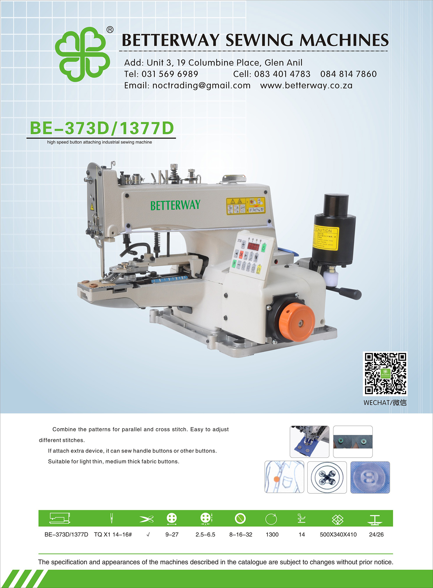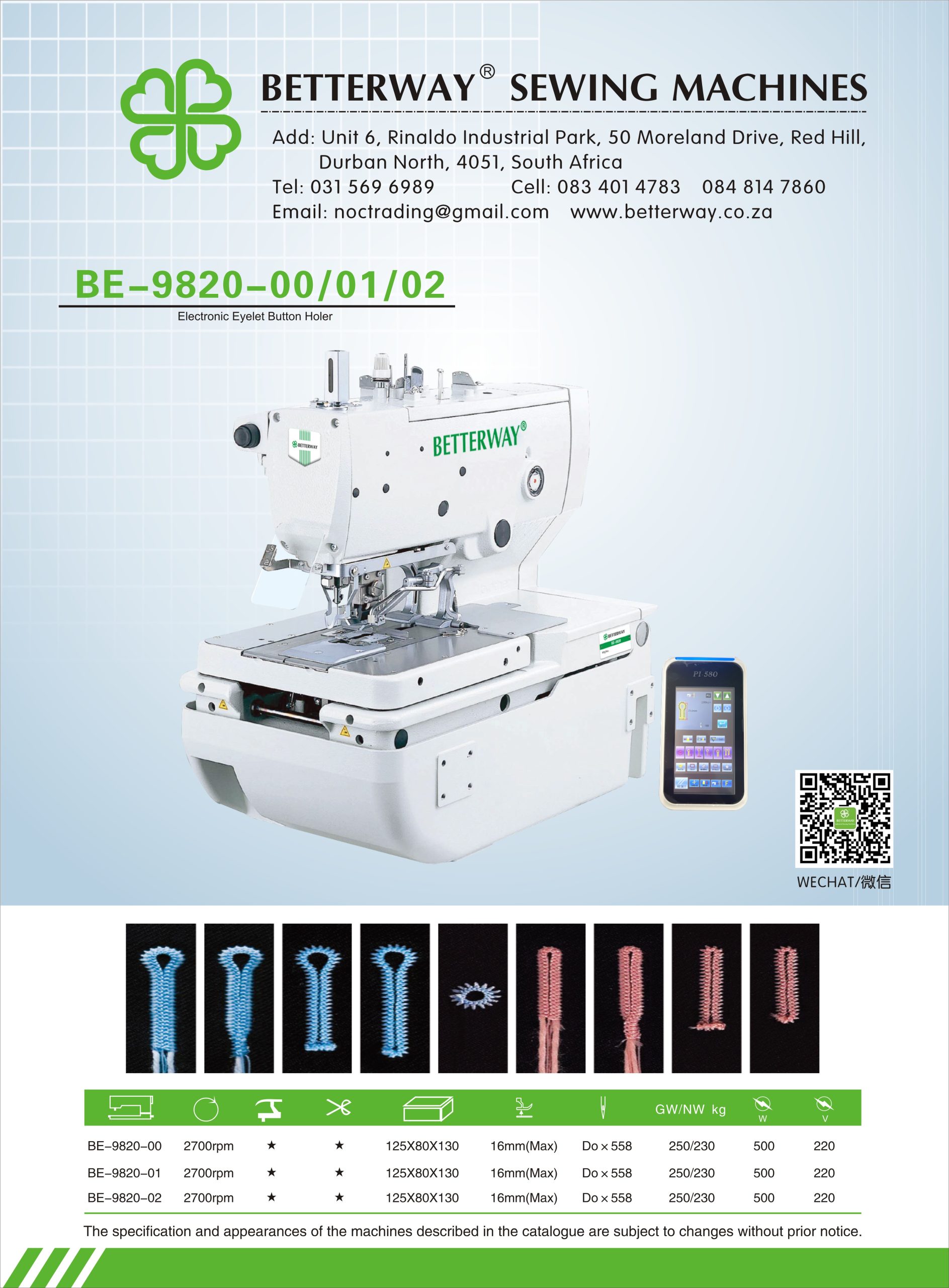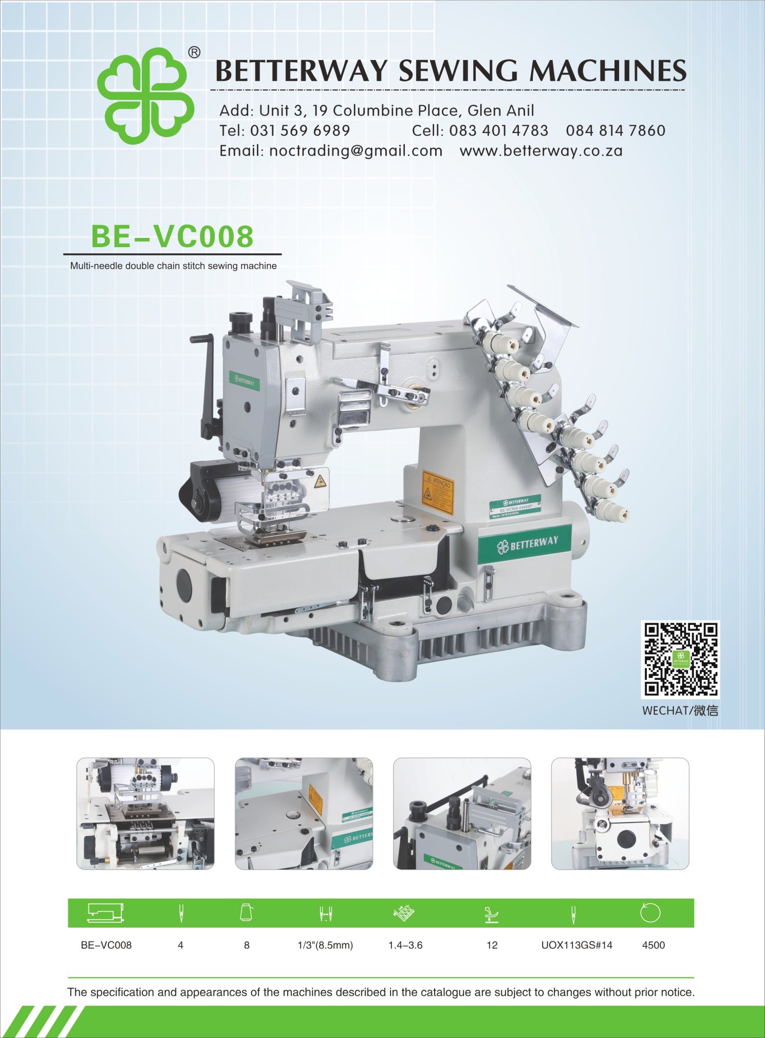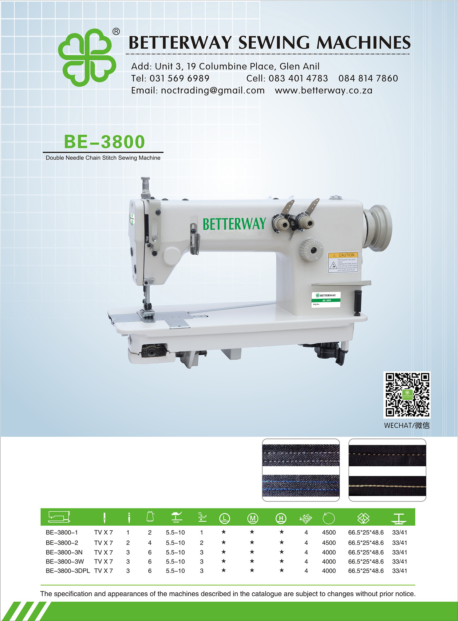 Established in 2016. Durban based importer and distributor for industrial sewing machines and allied products. Mainly engaged in industrial sewing machine sales, sewing machine parts and maintenance.