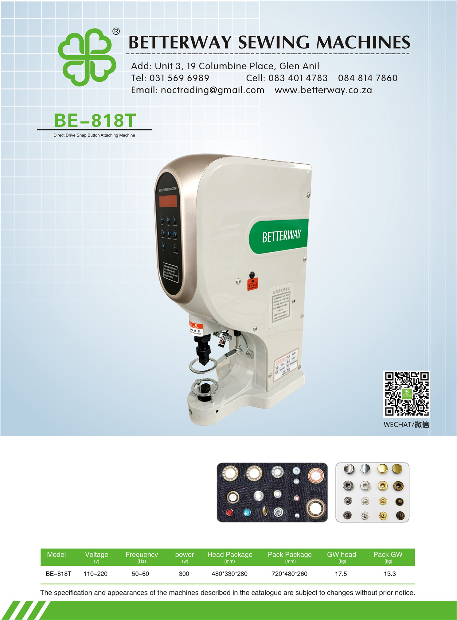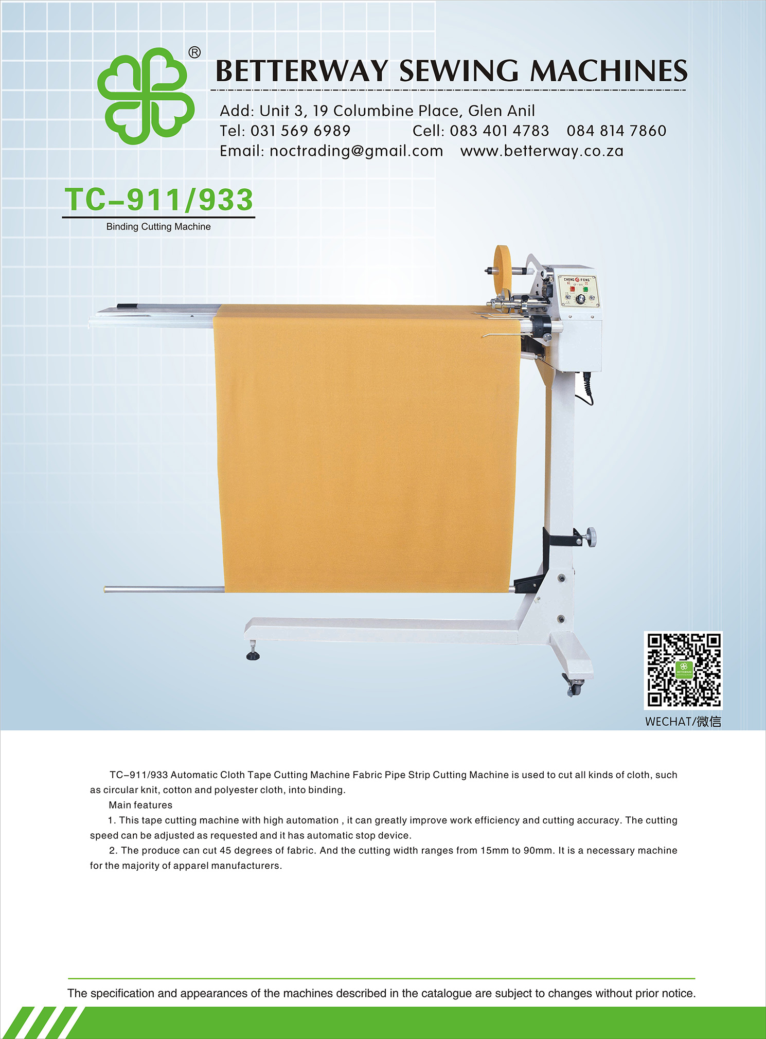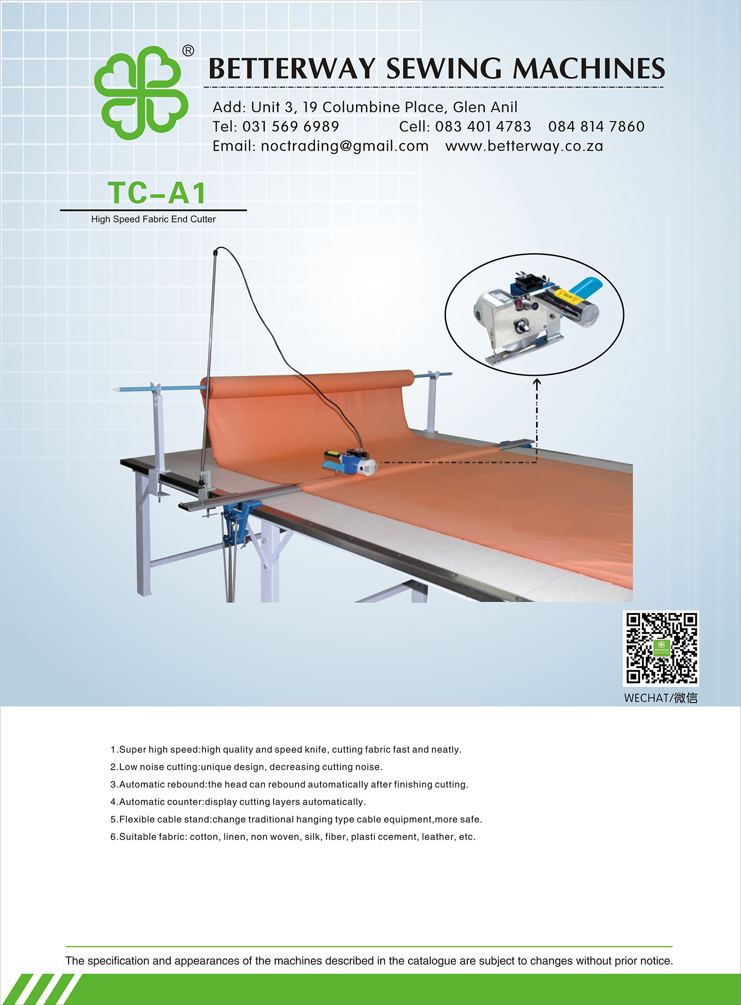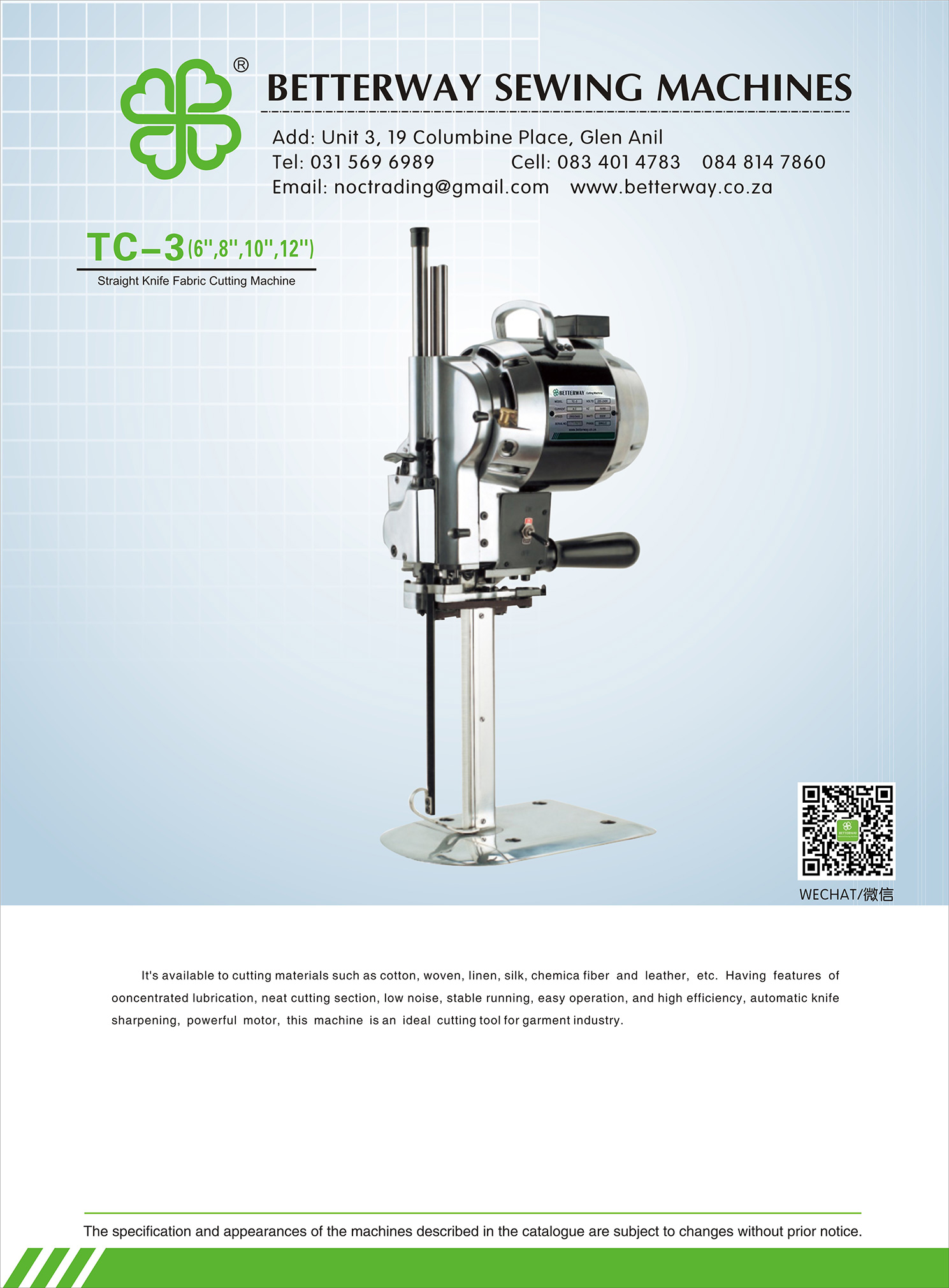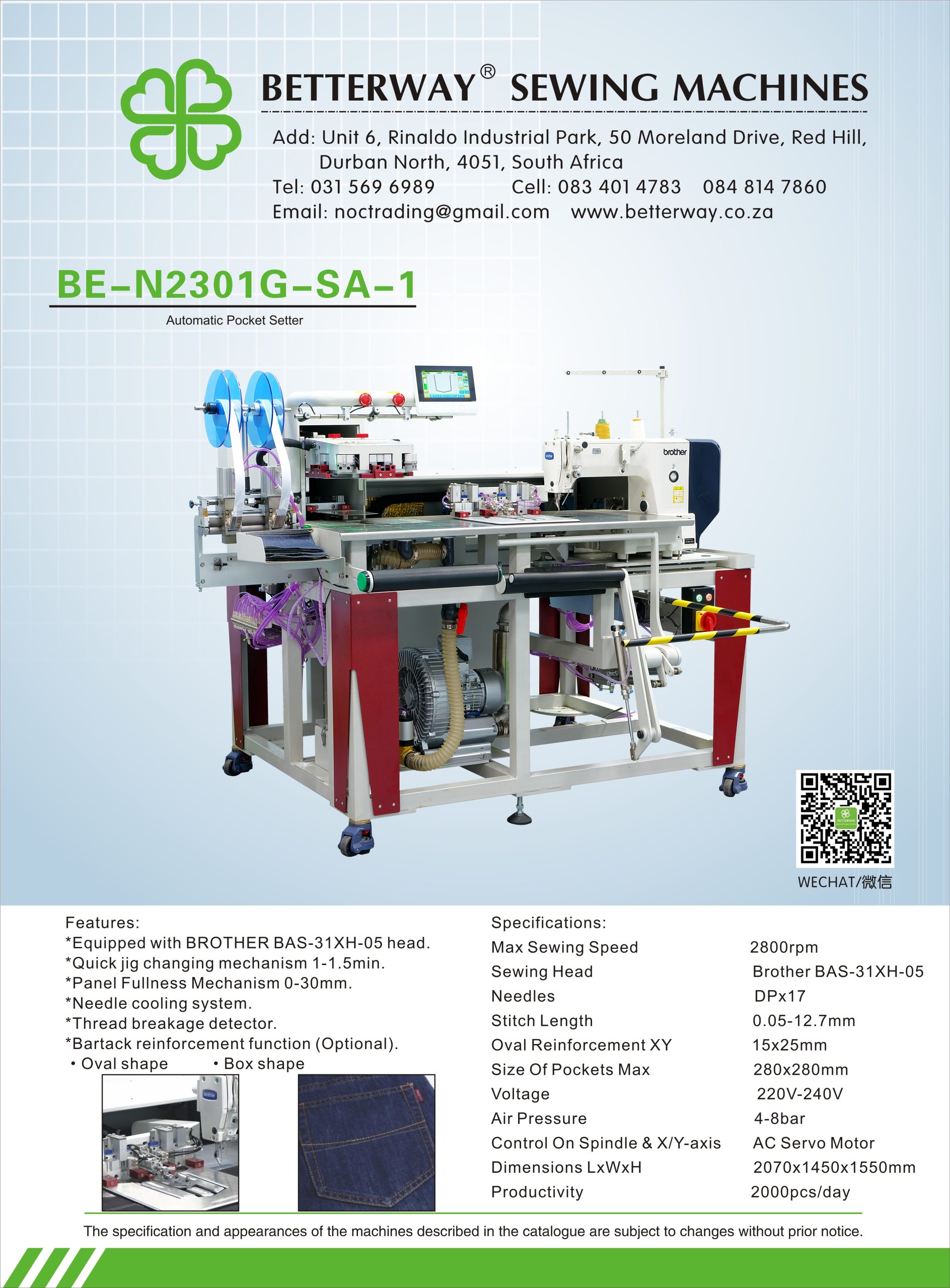 Established in 2016. Durban based importer and distributor for industrial sewing machines and allied products. Mainly engaged in industrial sewing machine sales, sewing machine parts and maintenance.